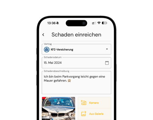 Wir verarbeiten diese Daten und schon wird der Schaden zum entsprechenden Versicherungsvertrag hinterlegt.