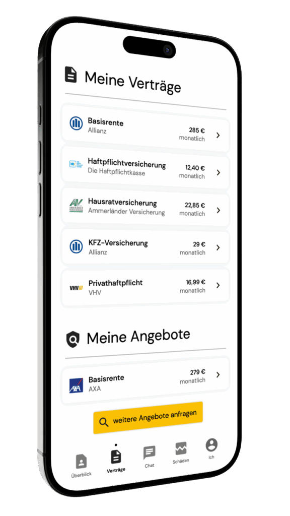 Andere, nicht von uns betreuten Versicherungen können von Ihnen erfasst werden. Als Service prüfen wir diese auf Qualität und geben eine Rückmeldung dazu.